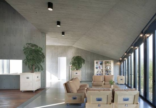 朴素的建筑语言清水混凝土体现的是“素面朝天”的品位。但建筑师们认为,这是一种高贵的朴素,看似简单,其实比金碧辉煌更具艺术效果。“清水混凝土”一直是国内建筑领域少人涉足的一片神秘之地。清水混凝土,极具装饰效果,所以又称装饰混凝土。它浇筑的是高质量的混凝土,而且在拆除浇筑模板后,不再作任何外部抹灰等工程。它不同普通混凝土,表面非常光滑,棱角分明,无任何处墙装饰,只是在表面涂一层或两层透明的保护剂,显得十分天然、庄重。虽然,它与生俱来的厚重与清雅是一些现代建筑材料无法效仿和媲美的;而其施工难度之大,可变因素之多,又使其始终难以被国内的业主和建筑师所采用,更鲜有成功的范例。
